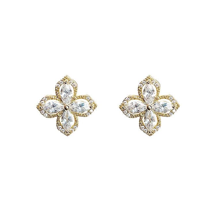 Clover Stud Earring - Gold Vermeil with Zircon - Design inspired by Wheel of Fortune